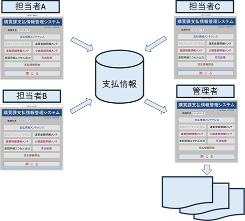 - ・仕入先からの請求情報をシステムに入力し、支払い状況を管理するシステムを内製。