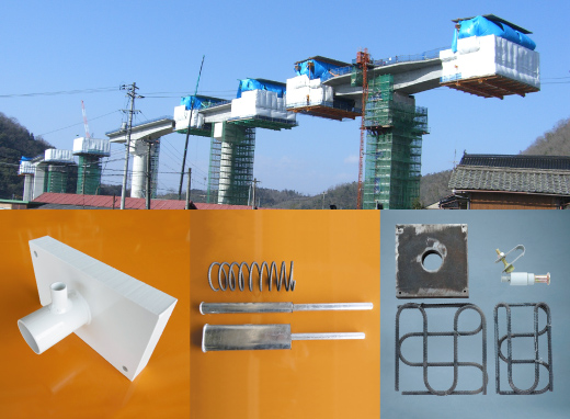 For a long and large iron bridge, fastener components such as high tension bolts and anchor bolts are used. For a PC bridge, various hardware is used.