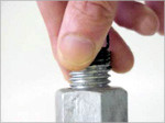 既設・新設を問わず 取付けていただくだけで、ボルトのネジ山を塞ぎ、ナットの脱落を防止、ハイパーロードスプリング自体も緩みません。